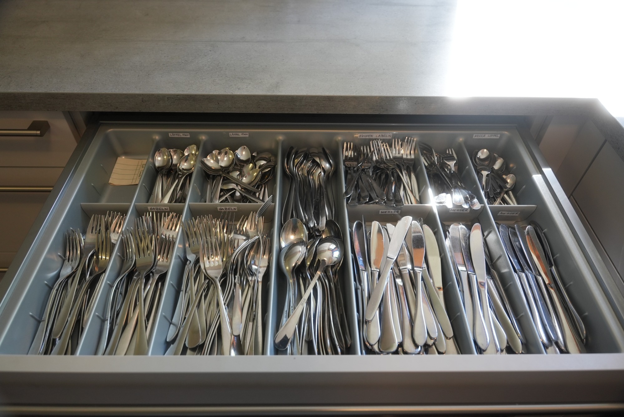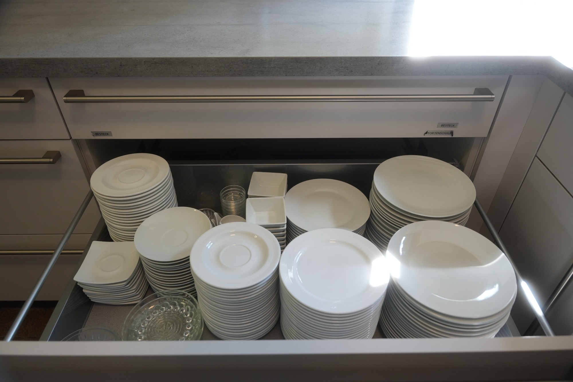 - Schublade mit Tellern