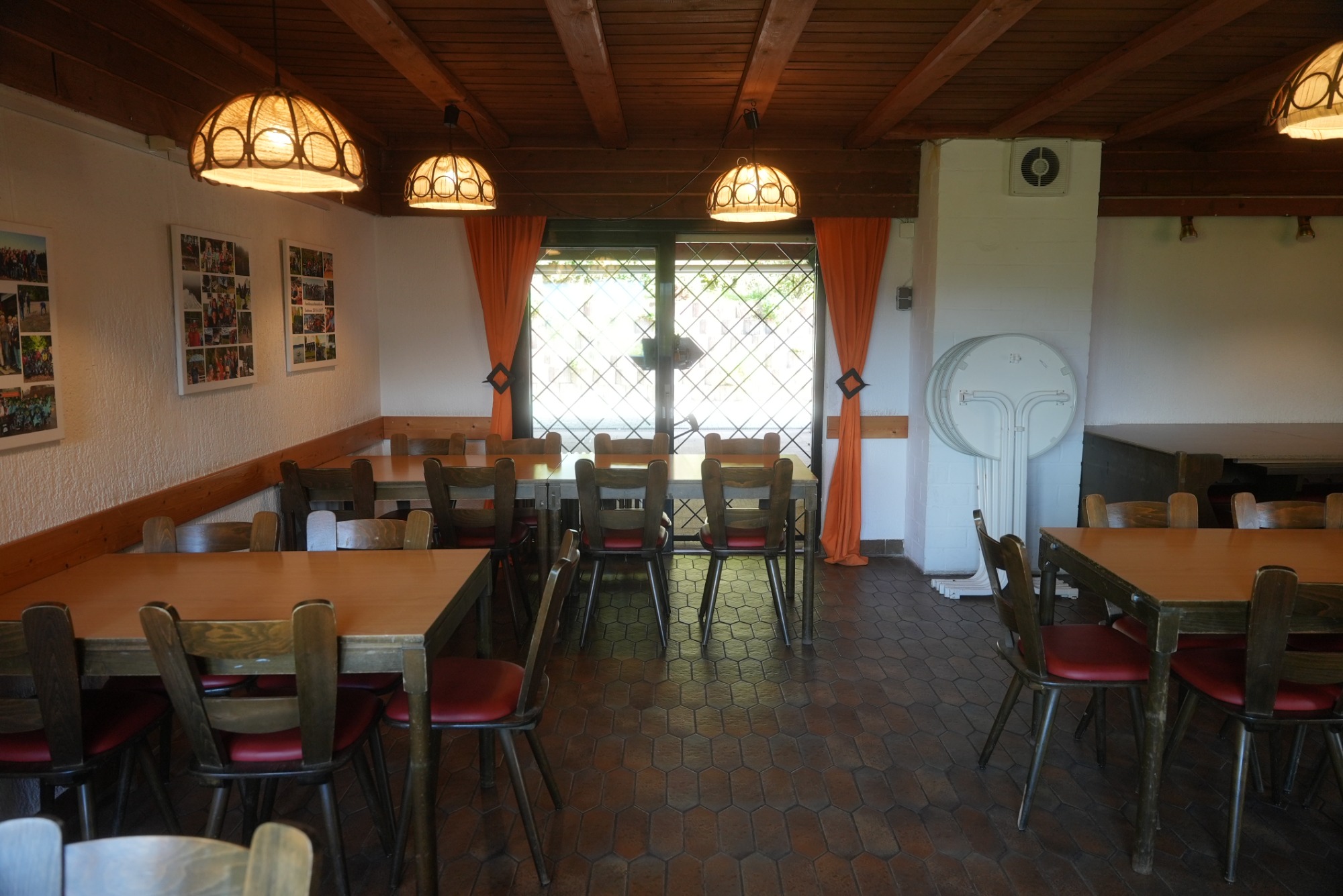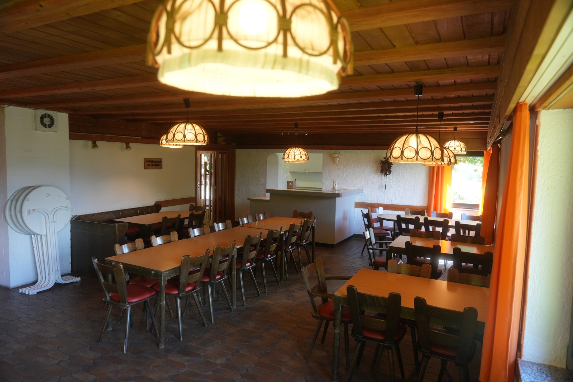 - überdachte Terrasse, im Hintergrund Tür zu Gastraum